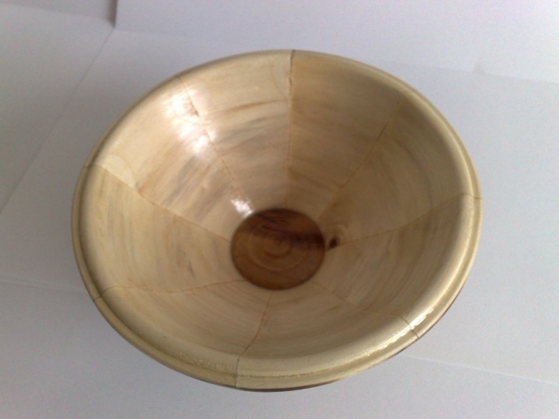 A tálka 65mm.magas,átmérője 145mm.A belsejébe cseresznyefa gombot tettem díszítésnek.