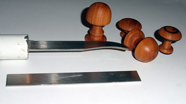 4 mm vastag, már túl keskenyre élezett (tehát eldobásra ítélt) HSS gyalukésből készült.