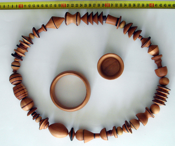 Láncszemek átmérője kb 30 mm, a hossz változó és a szemek mindenféle alakúak. + karperec, meg egy kis tálka, ami a karpereckészítés középanyagából lett. Ezek is cseresznye.