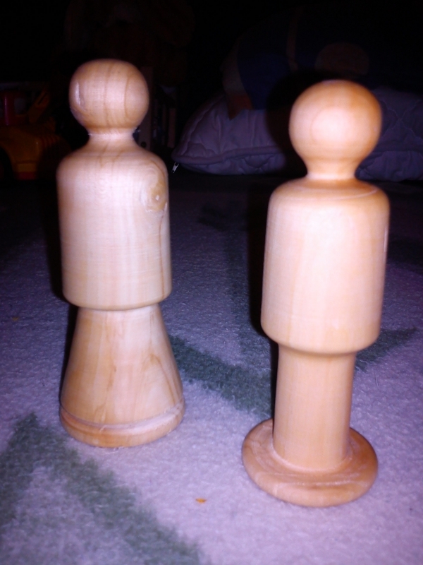 Babák a gyerekeknek. Az arányokat tekintve kicsit eltérőek, de ez alapján, majd készül a tombolán nyert körtefából 3 - 3 pár (a télen)