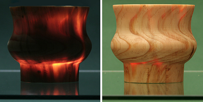 Ez nagyon gyantás fa. A darab öreg (kb 40 év), különben frissen nagyon kenődik a gyanta. A gyantásabb részeken a fény jobban áthatol.