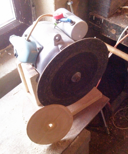 Nagy flexkoronggal szerelve (egyenlőre csiszoló papír nélkül), előtte kisebb flex tárcsa, 100-as csiszolópapírral...