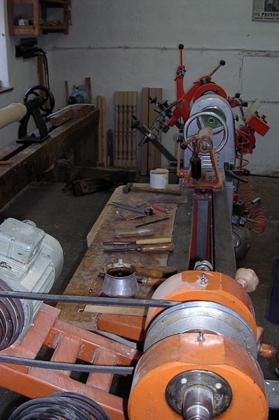 A Pausch műhely két modernebb esztergája. Háttérben az automata, előtérben a hagyományos kézi.
