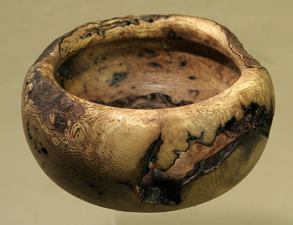 Forester: Apró-ága-hullott, kérgeváló öreg tögy száradékot kellett kivágnom, hogy nagyobb kárt ne okozzon. Annak egyik ágán találtam a dudort, amely teljesen zárt volt. Tettem-vettem, nézegettem, majd egyik oldaláról nekifogtam és fogalmam nem volt hogy mire számíthatok majd beljebb. Végül ez lett belőle. A golyva-megmunkálás tehát azt gondolom nagyon erősen szerencse dolga, hogy mi lesz az eredmény. Mikor már félúton jártam, mindig vaciláltam: továbbmenjek, vagy se, végül itt álltam meg. Nagy mázlim volt ezzel a darabbal.