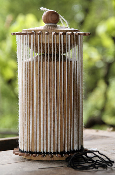KB 25 cm magas, 12 cm körüli átmérővel, ha jól emlékszem. Lányom kapta akkor. Csövet lehet szőni vele, minek fenekét bevarrva lesz a zsákocska.