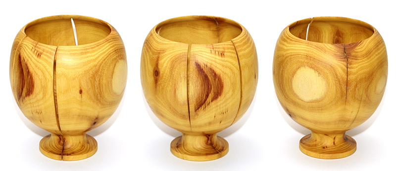 Egy a nagy baja: minden kifolyik belőle, mert már a rönkben sok volt a repedés, de mégis sikerül egyben tartva kupává kikupálni.