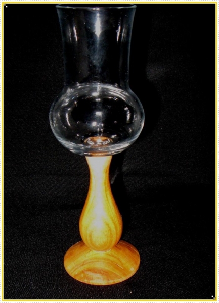 Az üvegpohár szárát alul vágtad le és az így kapott "üveg csapot" ragasztottad be a fa talp furatába?