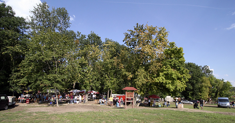 A helyszín. A faesztergályos csoport a kép bal szélén van.