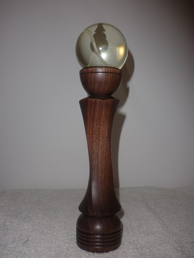 Fekete diófa natúr viaszolva H=200 D=55 mm + Üveggömb D=65 mm