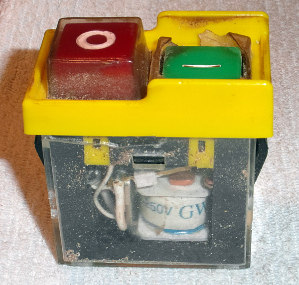 Első ránézésre ez semmi más, mint egy öntartó áramkör. A "BE" megnyomásával meghúz a mágneskapcsoló, indítja a motort, és öntartásba kerül, hogy ha elengeded a gombot, akkor is bekapcsolva maradjon. A "KI" megnyomásával bontja az öntartást, és elenged. Sok minden nem tud ebben elromolni, kapcsoló (beégés, elpiszkolódás), vagy a mágneskapcsoló tekercsének szakadása, vagy érintkezőjének beégése. Ha szét lehet szedni, ezeket kellene megnézni.