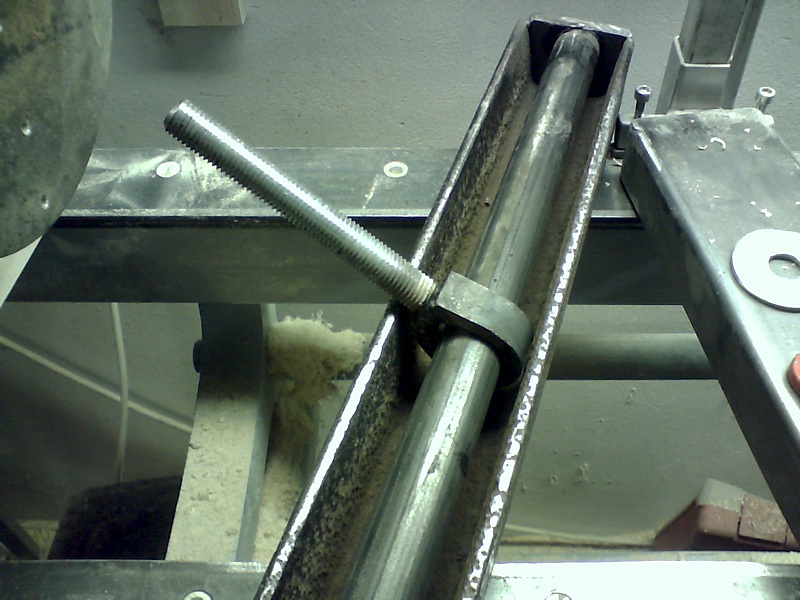a húzórúd M16-os menetes szár 6x25-ös laposvas füllel. Alul a váz átfogására szortófej, kiengedett excenterrel kézzel állítható az anya.