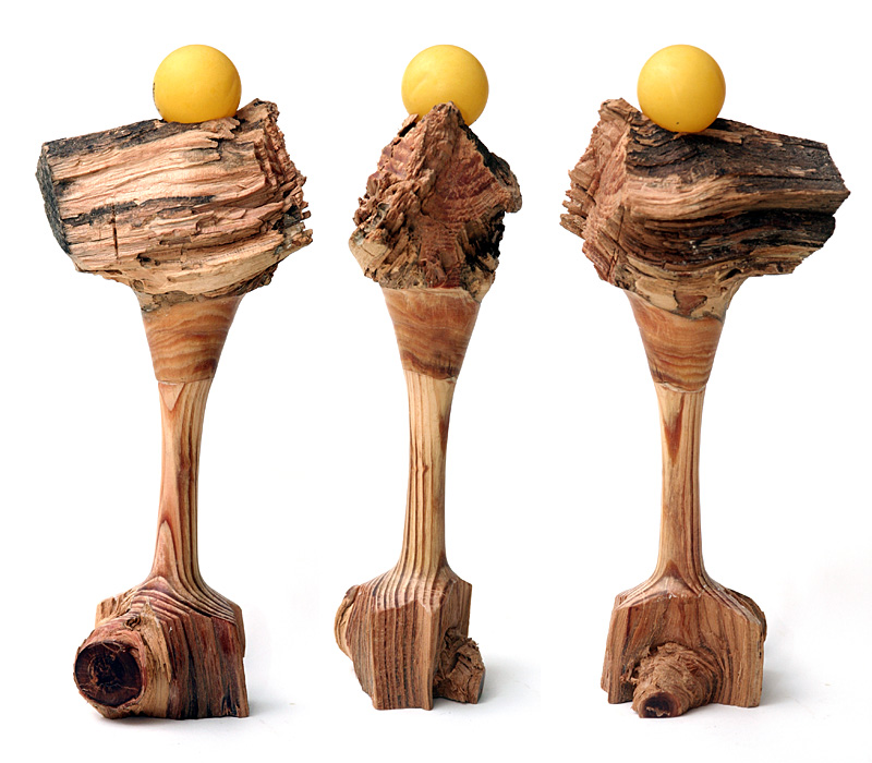 Vannak fadarabok, melyek hányódnak, majd alakulnak, végül egymásra találnak, de még hiányzik valami róla, pl. egy ping-pong labda, s rápattan az is. A fa: feketefenyő hasogatási maradék.