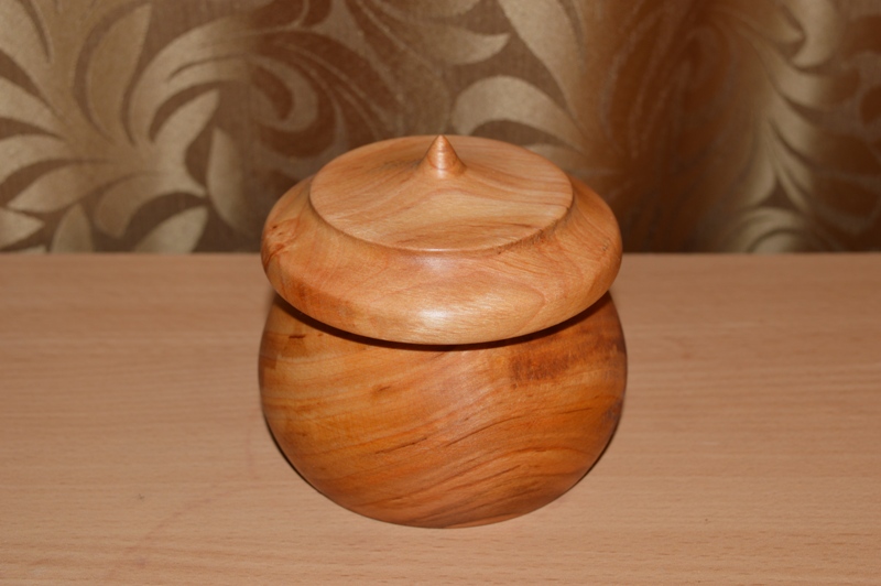 Éger dobozka, kb. 8-9 cm magasság, 10 cm átmérő.