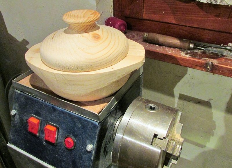 Jól néz ki ez a rusztikus tál. A fenyőhöz még élesebb véső kell!