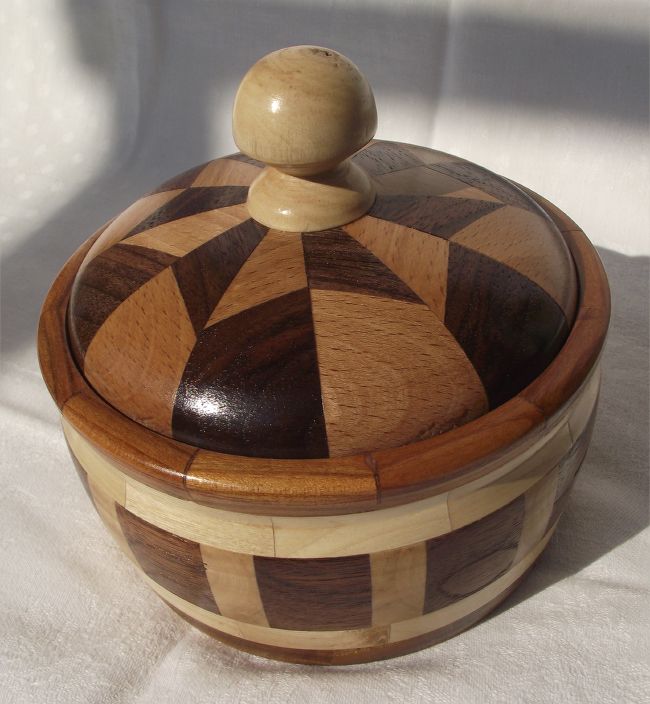 Anyaga:dió, bükk, gőzölt bükk olajjal kezelve. D=140, H=80 mm