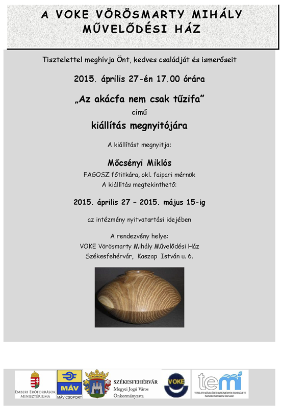 2015. április 27. 17 órakor kiállítás megnyitó Székesfehérváron.