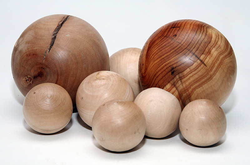 A körte és a tiszafa 85 mm-esek. Az aprók török-mogyoróból vannak. A nagyok holkerrel és csiszolással, a kicsik csak a simítókéssel készültek. A nagyok módszerei eltérőek, most kísérletezek, hogyan lesz egyszerűbb, hatékonyabb. A nagyokon kb 1,5 mm a hiba.